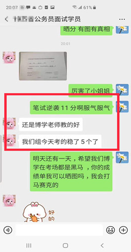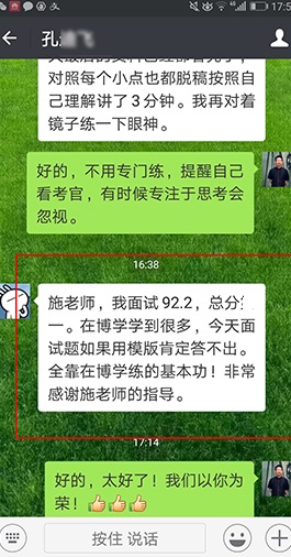 面試上岸有保障(指最終報考單位錄取)。 歷年來,事業(yè)單位面試培訓班上岸率有保障,均有據可查。博學面試課程體系無論是課程的深度、廣度、實戰(zhàn)性還是歷屆學員口碑和美譽度都遠高于其他同類輔導機構。面試狀元、最后一名反超成功的比比皆是。 |