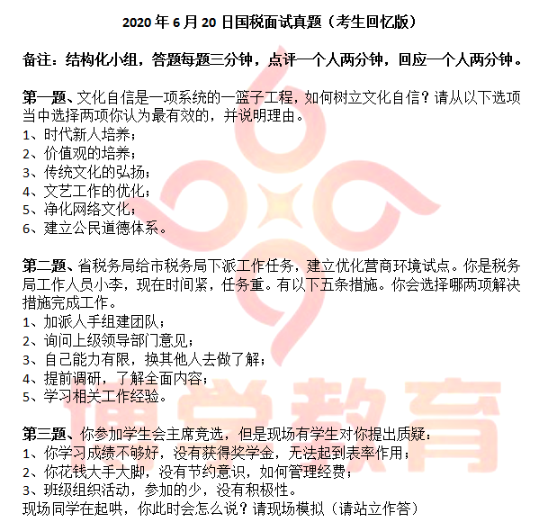 6月21日國稅系統(tǒng)面試出現(xiàn)4人一組