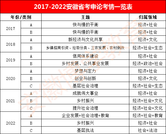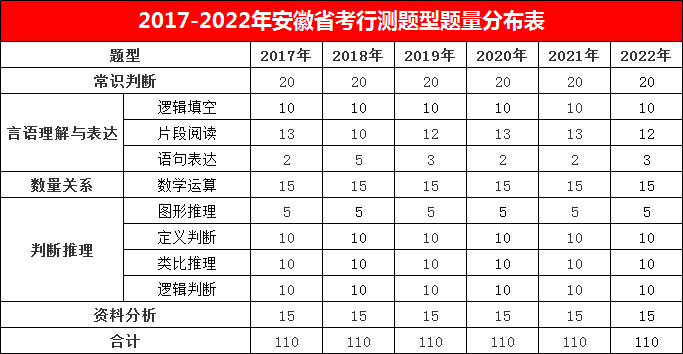 2016-2022年安徽省考行測題型題量分布表