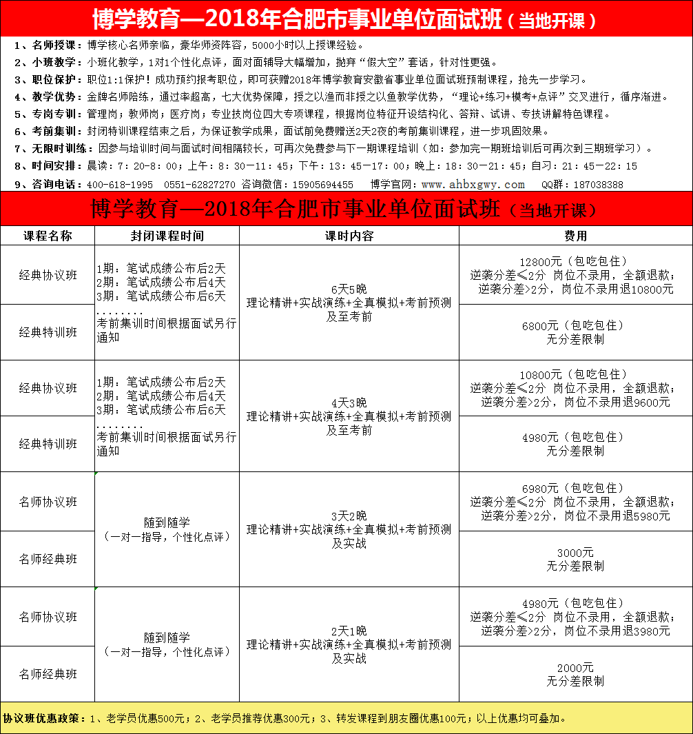 | 五、 | 報(bào)名電話(huà): 400-618-1995 0551-62827270 咨詢(xún)微信:15905694455、15305510574 |
